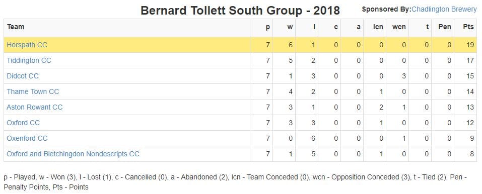 Oxfordshire T20 southern Section 2018 Week Seven Tiddington Foxes beat Oxford & Bletchingdon by 10 Wickets Tiddington romped to a 10 wicket win to confirm their place against Banbury in the Wilf Bennett final Please see our T20 page for further details under...